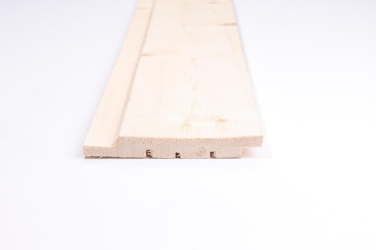 DOBBELTFALSET 60 GRADER, NY TYPE – En mer moderne kledning enn den tradisjonelle dobbeltfalsede kledningen. Litt brattere skrå på 60 grader. Brukes primært som liggende kledning.