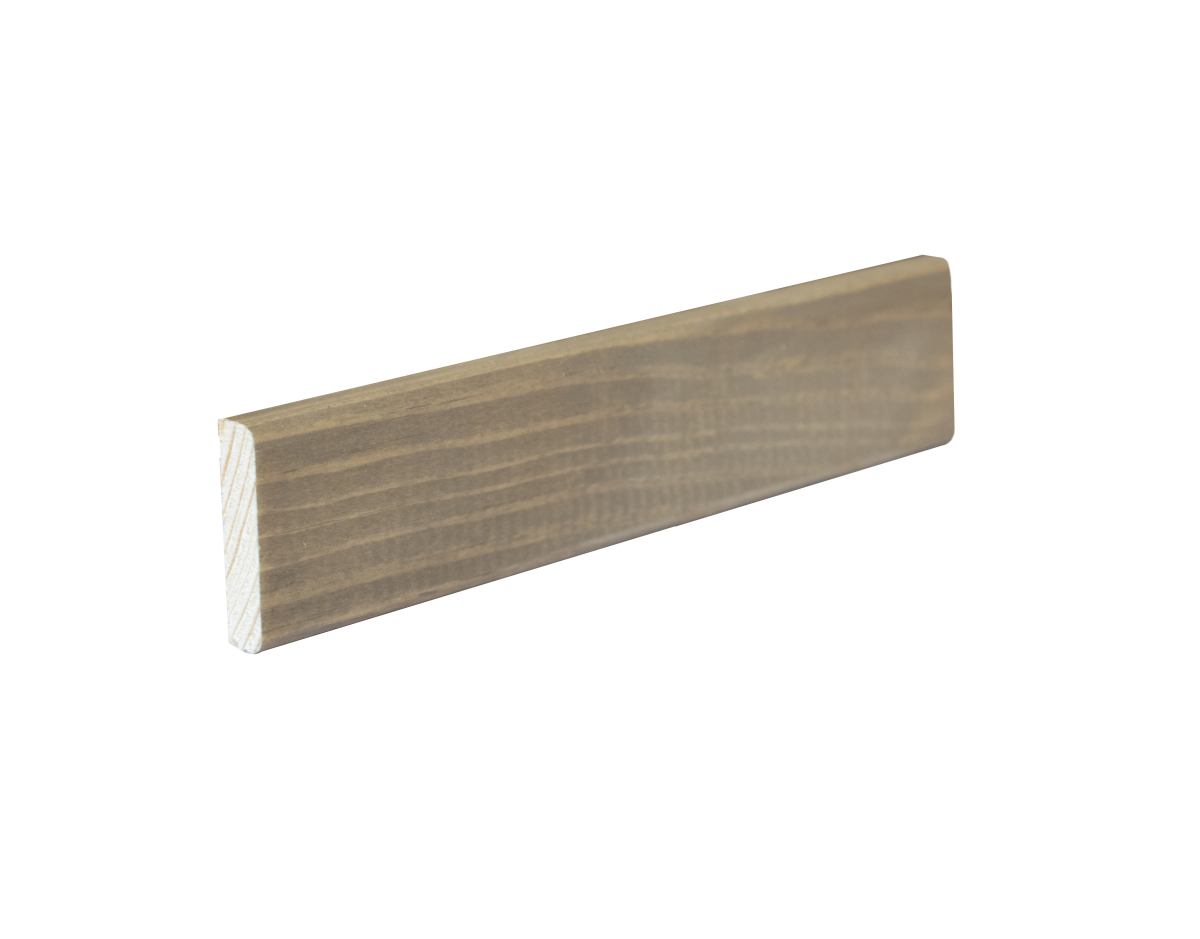 Beiset listverk – til Saltgrå pusset panel. Beiset litverk vil ha naturlige variasjoner i fargen.