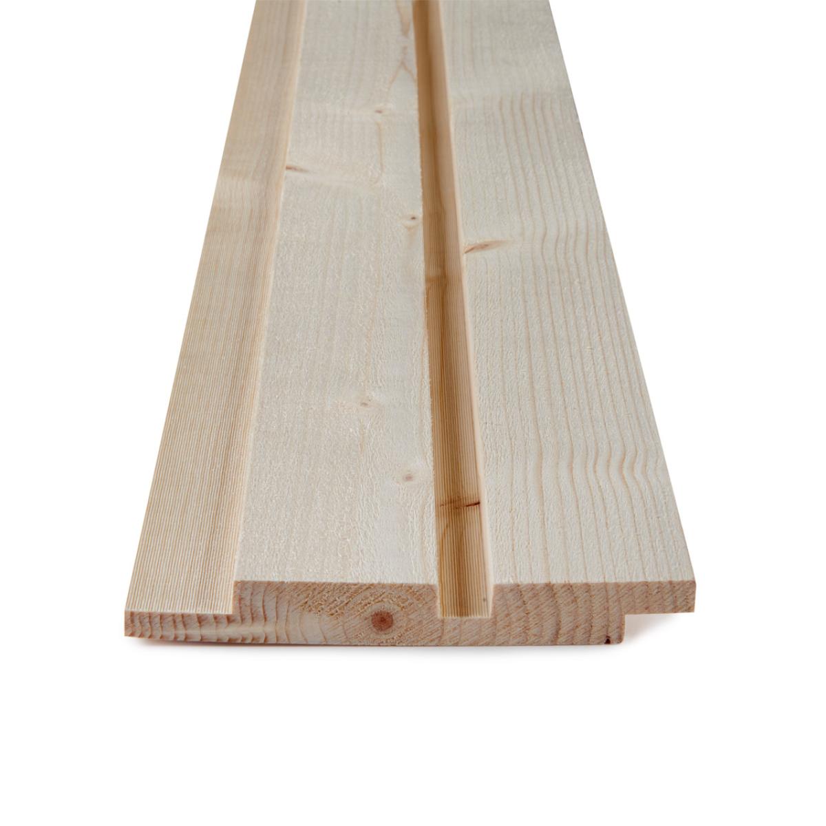 DOBBELTFALSET RETT 10 MM SPALTE MED 13 MM MIDTSPOR – brukes stående og gir moderne uttrykk. Dette er en bred kledning, men den gir et uttrykk av å være en smal kledning – på grunn av midtsporet.